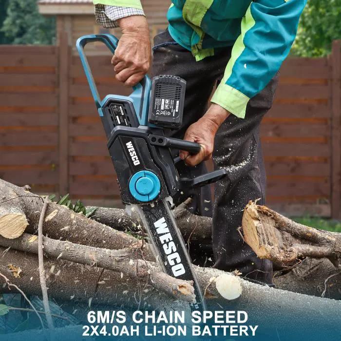 Motosierra inalámbrica de 36 V (2 x 18 V) - 2 baterías y cargador - longitud de la hoja 30 cm - WESCO WS8303